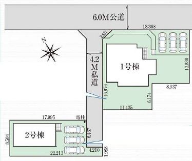| 接道 | 北側6.0m公道 西側4.21m私道 東側4.21m私道 | 土地権利 | 所有権 |